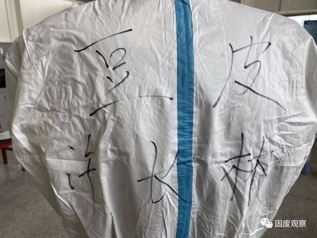 許長(zhǎng)林將他的姓名和“綽號(hào)”寫(xiě)在防護(hù)服外