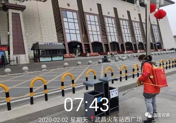 凌晨的武昌站 54歲的錢秋玉背著30斤消毒水抗疫