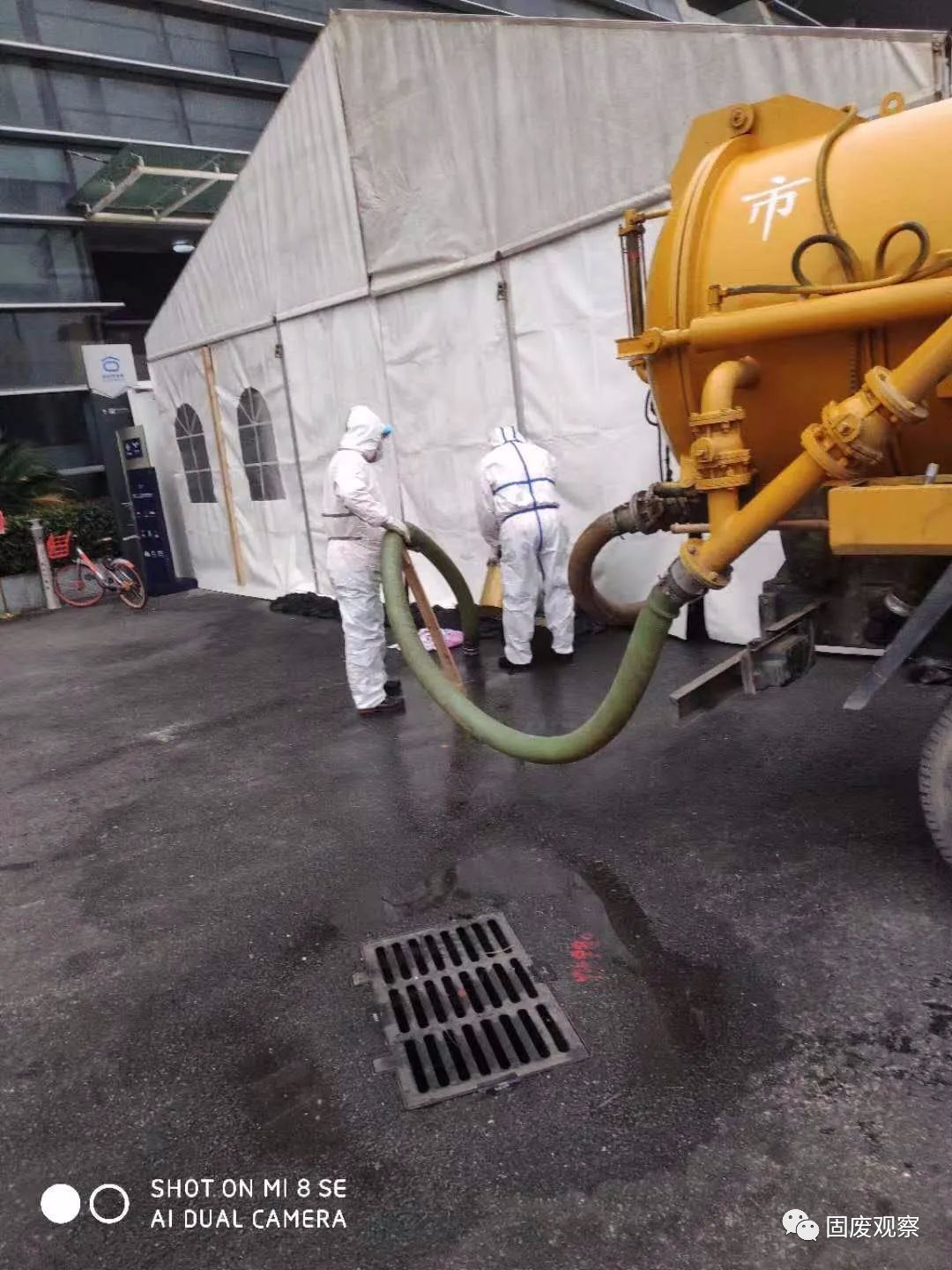 劉立山和隊(duì)友正在方艙醫(yī)院外開(kāi)展吸污工作
