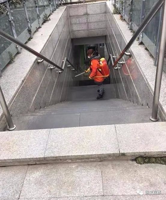54歲錢秋玉正在對(duì)武昌火車站地下通道開(kāi)展消殺