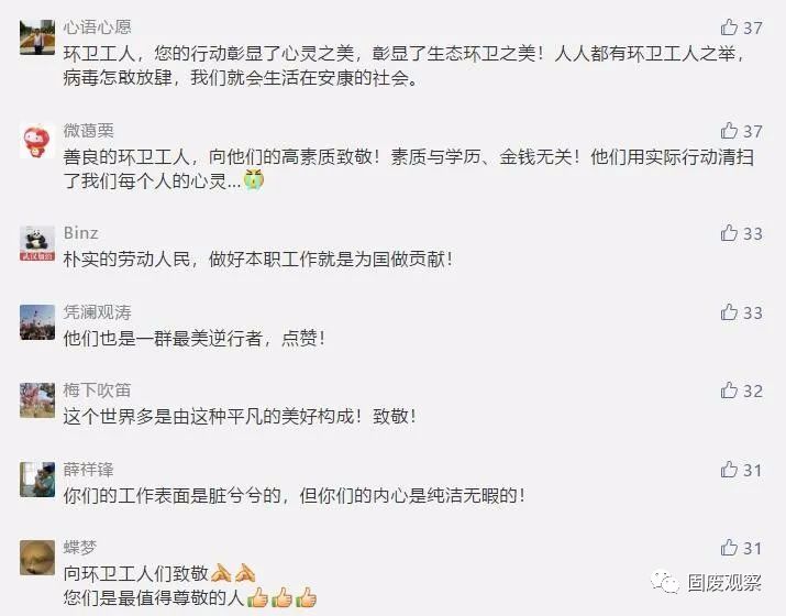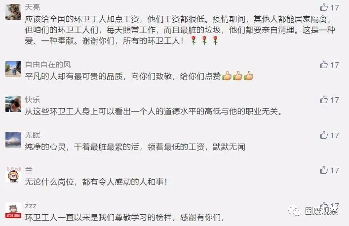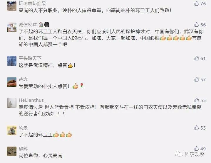近日,荊楚網(wǎng)一篇《武漢隔離的環(huán)衛(wèi)工退房后,酒店經(jīng)理邊查房邊抹淚》的微信,讓無(wú)數(shù)讀者落淚,并紛紛點(diǎn)贊:“她們是最美最可敬的人!”“平凡的崗位造就了不平凡的人”“他們不僅打掃看得見(jiàn)的垃圾,還能清潔我們心靈里的灰塵”“我含著眼淚向這群擁有最美心靈的姐妹們致敬!”“平凡的人們給我最多感動(dòng)!”