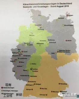 圖3 德國(guó)現(xiàn)有和新建焚燒設(shè)施分布圖