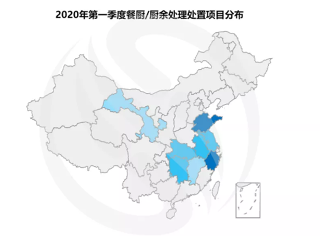 餐廚/廚余垃圾處理處置項(xiàng)目:80%項(xiàng)目集中在長(zhǎng)江經(jīng)濟(jì)帶地區(qū)