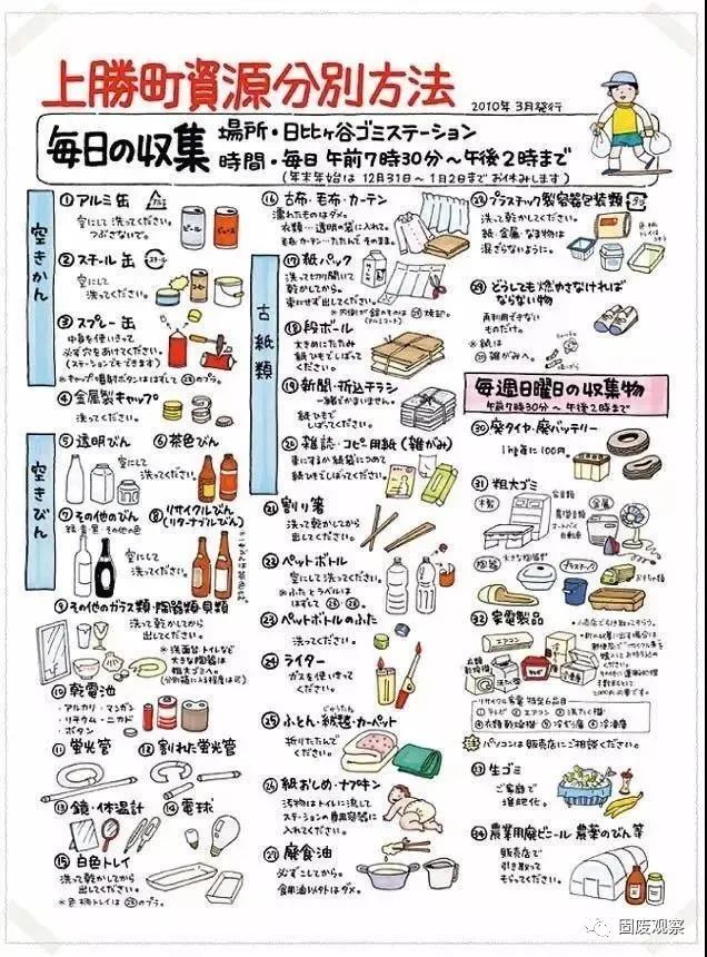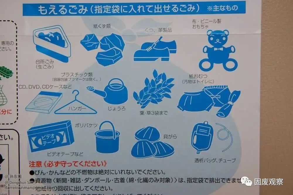 橫濱市分發(fā)給居民的垃圾分類手冊(cè)長(zhǎng)達(dá)27頁(yè),包含條款518項(xiàng)。如:口紅屬可燃物,但用完的口紅管屬小金屬物;水壺屬金屬物,但12英寸以下屬小金屬物,12英寸以上則屬大廢棄物;襪子,若為一只屬可燃物,若為兩只并且“沒(méi)被穿破、左右腳搭配”則屬舊衣料;領(lǐng)帶也屬舊衣料,但前提是“洗過(guò)、晾干”。