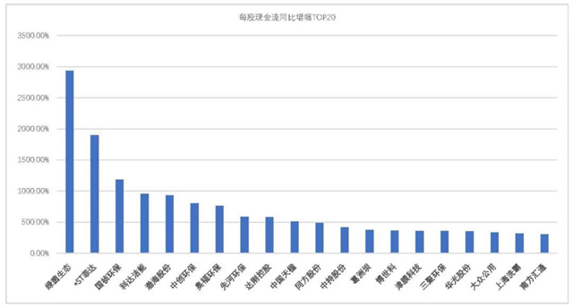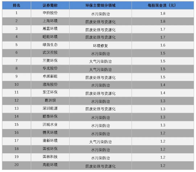 2019年A股環(huán)保上市公司每股現(xiàn)金流TOP20
