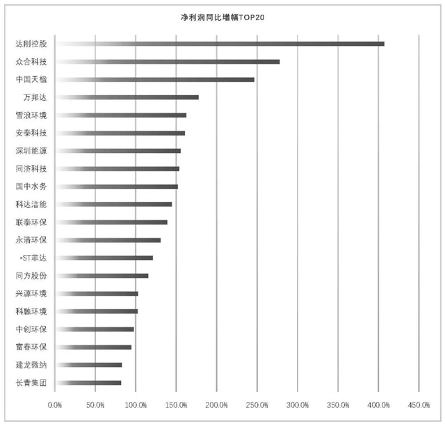 (截至盤點(diǎn)時(shí),因博天環(huán)境、東旭藍(lán)天、普邦股份、武漢控股尚未披露年報(bào),本盤點(diǎn)中采用其業(yè)績(jī)預(yù)告的數(shù)據(jù);神霧環(huán)保未披露業(yè)績(jī)預(yù)告和年報(bào),故未納入。)