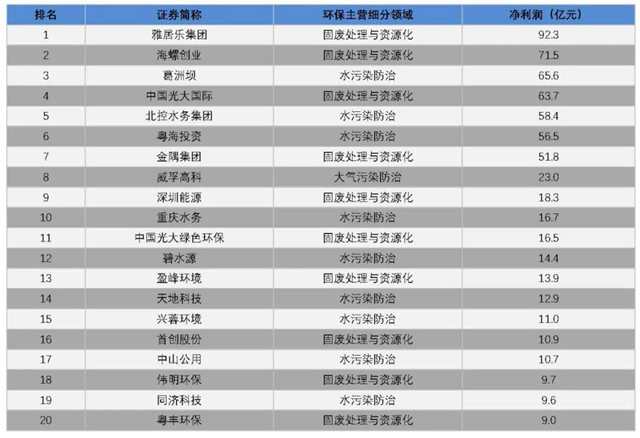 2019年129家(A股+港股)環(huán)保上市公司凈利潤(rùn)TOP20