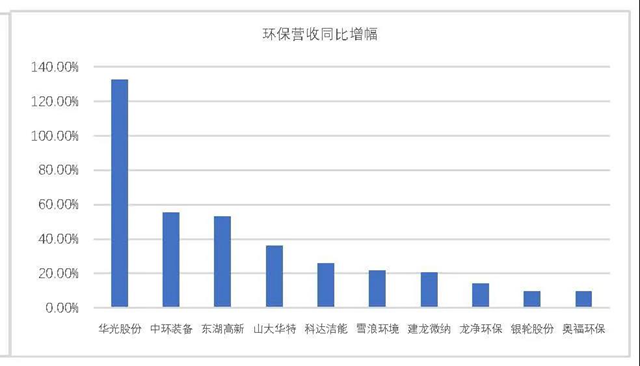 2019年水污染防治A股環(huán)保上市公司環(huán)保營(yíng)收同比增幅TOP10