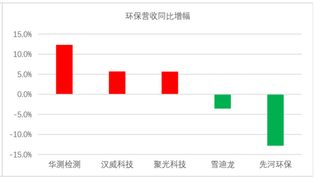 2019年環(huán)境監(jiān)測(cè)與檢測(cè)A股環(huán)保上市公司環(huán)保營(yíng)收同比增幅排名