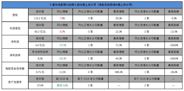 2019年環(huán)境監(jiān)測(cè)與檢測(cè)環(huán)保上市公司主要業(yè)績(jī)指標(biāo)