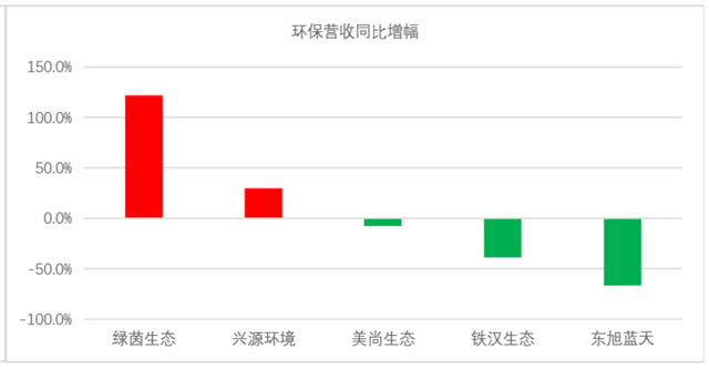 總體來看,環(huán)保上市公司在成長(zhǎng)性方面的表現(xiàn)好于預(yù)期,環(huán)保營(yíng)收和營(yíng)收均同比增長(zhǎng)。