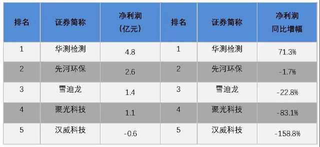 2019年環(huán)境監(jiān)測(cè)與檢測(cè)A股環(huán)保上市公司凈利潤(rùn)及其同比增幅排名