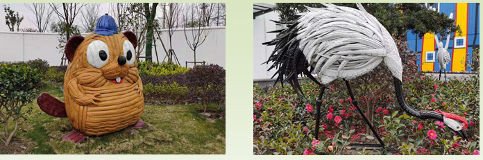 汽車輪胎制成的河貍和自行車輪胎制成的仙鶴