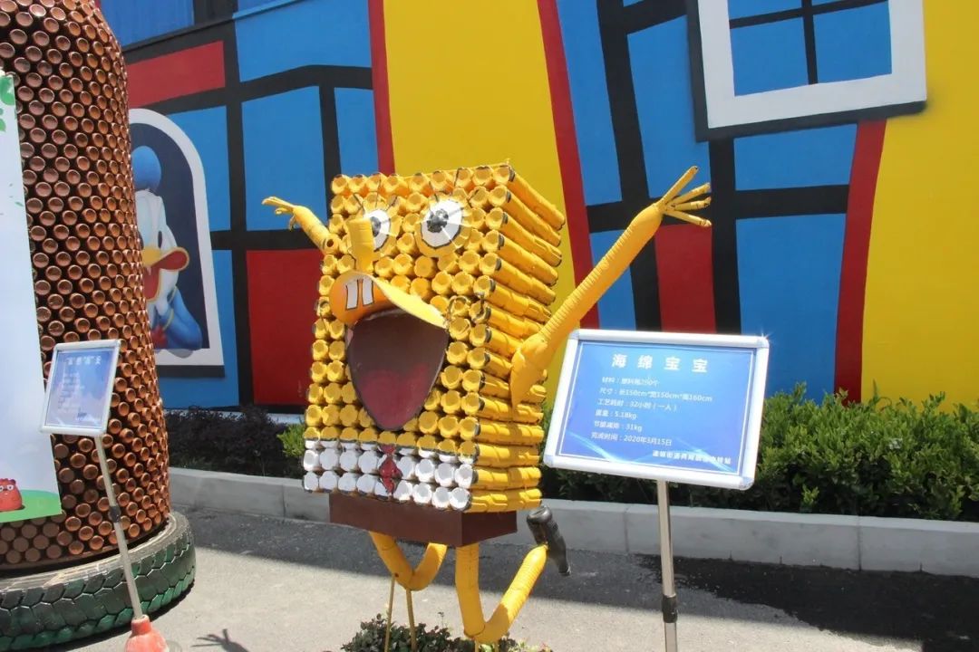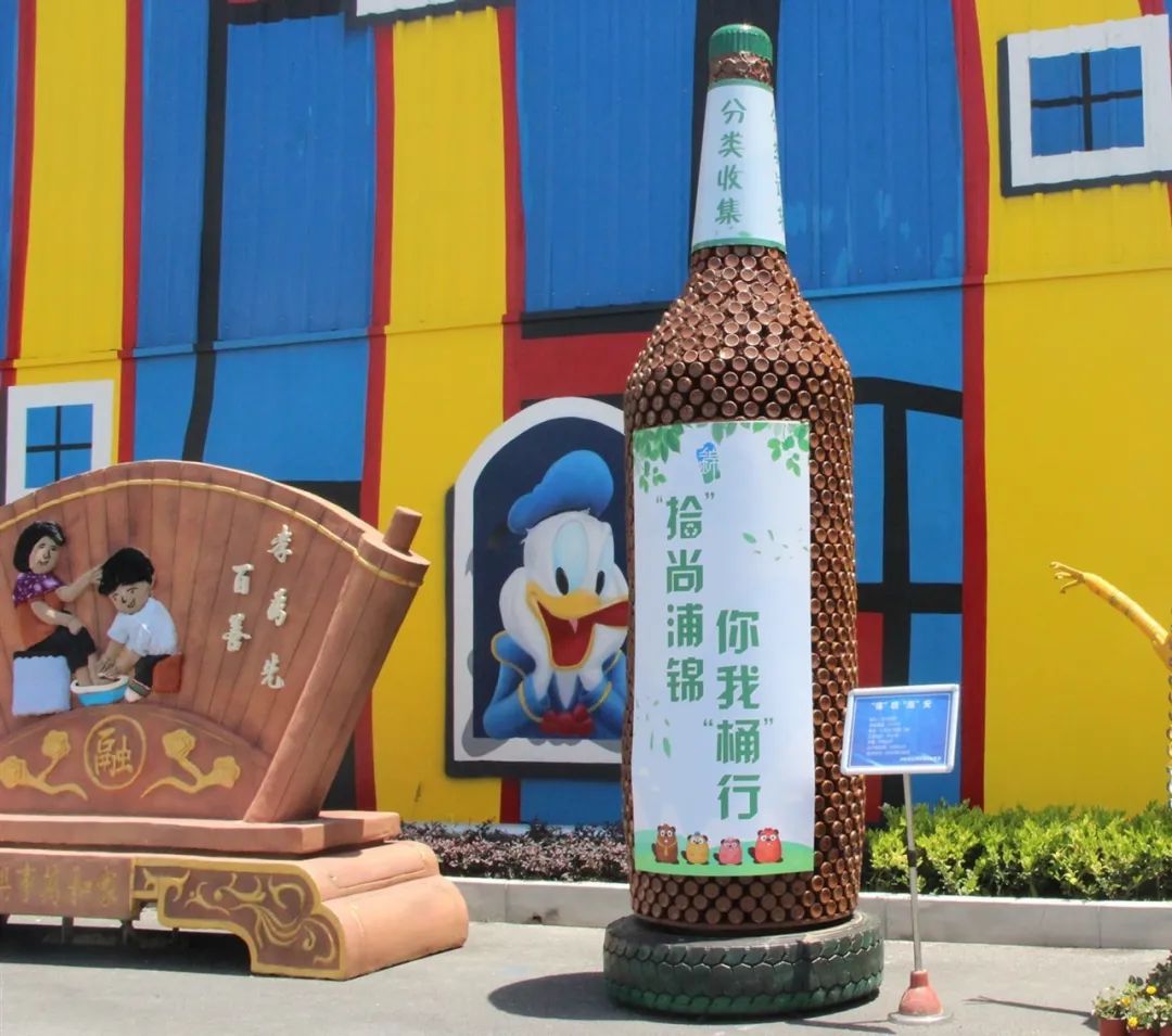 “在垃圾分類的過程中,我們看到了一些廢品有利用價值,就想到了做一些好玩有趣的東西。也想提醒市民,身邊的很多的東西其實都是寶貝,只要合理利用起來,可以做出讓人賞心悅目的作品。另一方面,我們也想通過這種方式去做科普,吸引小朋友參與到環(huán)保和垃圾分類活動中來。”閔行區(qū)環(huán)衛(wèi)服務(wù)公司的工作人員談到了制作這些創(chuàng)意作品的“初心”。