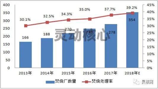 2013-2018年中國城市生活垃圾焚燒廠數(shù)量及焚燒處理率預(yù)測