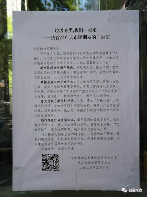 垃圾分類的宣傳和指導(dǎo)如何進(jìn)一步加強(qiáng)?藍(lán)藍(lán)天工作室記者觀察自己所在的小區(qū)發(fā)現(xiàn),設(shè)了分類垃圾桶,旁邊沒有專業(yè)指導(dǎo)人員,居民分不分類、分得對(duì)不對(duì),基本全憑自覺。上海市剛推行垃圾分類的時(shí)候,經(jīng)常有志愿者站在垃圾桶旁問前來投放的居民“你是什么垃圾”。為啥北京很多小區(qū)目前沒人問這樣的問題?國(guó)務(wù)院發(fā)展研究中心資源與環(huán)境政策研究所副所長(zhǎng)常紀(jì)文表示,從5月1日《條例》開始執(zhí)行后,他天天去附近小區(qū)拍照檢查??傮w看來垃圾分類已經(jīng)起步了,各小區(qū)基本都配備了廚余垃圾桶等,但仍然存在一些問題。例如,部分小區(qū)內(nèi)沒有宣傳橫幅,分類垃圾桶邊沒有配備專人進(jìn)行指導(dǎo)監(jiān)督。一些小區(qū)宣傳和指導(dǎo)不到位,導(dǎo)致居民有分類意識(shí),但缺乏分類知識(shí)。“我在不少小區(qū)看到大家把外賣餐盒跟廚余垃圾扔在一起,但它屬于使用過的、沾了菜湯油污的塑料類制品,應(yīng)該投放到其他垃圾桶中。”常紀(jì)文說。在有的小區(qū),為保證每個(gè)分類垃圾桶旁都有指導(dǎo)人員,取消了一些垃圾桶,讓居民走到較遠(yuǎn)的投放點(diǎn)扔垃圾。常紀(jì)文表示,他觀察到一些小區(qū)內(nèi)垃圾桶分布不均勻,有些樓棟下缺少?gòu)N余垃圾桶,有些沒有其他垃圾桶,“至少應(yīng)該以某種形式讓居民知曉,小區(qū)內(nèi)哪里有對(duì)應(yīng)的分類垃圾桶,方便精準(zhǔn)投放?!?/span>劉建國(guó)認(rèn)為,現(xiàn)階段,應(yīng)進(jìn)一步加大宣傳教育和組織動(dòng)員力度,讓垃圾分類真正“熱起來”;層層落實(shí)各級(jí)政府相關(guān)職能部門職責(zé),特別是切實(shí)落實(shí)管理責(zé)任人責(zé)任,將壓力和責(zé)任傳導(dǎo)到每個(gè)居民,讓垃圾分類“硬起來”;統(tǒng)籌疫情防控和垃圾分類兩項(xiàng)工作,讓二者有機(jī)結(jié)合,互相促進(jìn),讓垃圾分類“動(dòng)起來”;北京的黨政機(jī)關(guān)、高??蒲性核⑵髽I(yè)總部、社會(huì)組織密集,應(yīng)帶頭做好源頭減量和垃圾分類,為居民作出表率、增添信心,讓垃圾分類“亮起來”。“未來,要從執(zhí)法保障、政策激勵(lì)、長(zhǎng)效機(jī)制、科學(xué)管理、多元共治、科技支撐等不同層面,不斷完善和優(yōu)化垃圾分類投放、收集、運(yùn)輸、處理全鏈條,倒逼生產(chǎn)生活環(huán)節(jié)源頭減量,分類物品物盡其用各得其所,降低垃圾分類的綜合社會(huì)成本,促進(jìn)居民養(yǎng)成良好習(xí)慣,提升社會(huì)文明水平?!眲⒔▏?guó)說。上圖:北京市有關(guān)部門致市民的一封信。(劉毅攝) 如何避免運(yùn)輸和處置中出現(xiàn)混裝混運(yùn)現(xiàn)象?不少居民表示,推行生活垃圾強(qiáng)制分類以來,自己所在的小區(qū),垃圾分類的宣傳力度明顯加強(qiáng),做到了分類投放、分類運(yùn)輸。然而,也有居民表示,自己辛辛苦苦分好類,甚至把快遞盒上的膠帶都刮下來按類別投放,結(jié)果發(fā)現(xiàn)垃圾車還是把所有垃圾一股腦混倒在一起運(yùn)走。劉建國(guó)表示,“前端分類,后端混合”是個(gè)廣受詬病的老問題,實(shí)際上是垃圾分類系統(tǒng)前后端不配套造成的。《北京市生活垃圾管理?xiàng)l例》中約束的一個(gè)主要對(duì)象,是從事垃圾收集運(yùn)輸處理的企業(yè),處罰門檻很低,處罰力度很大,就是為了解決先分后混、混裝混運(yùn)的問題。“居民看到混裝混運(yùn)現(xiàn)象,可以馬上投訴,督促企業(yè)做好分類收集運(yùn)輸處理。當(dāng)然,咱們自己也要做好分類投放,不能以混裝混運(yùn)為借口而不履行義務(wù)。只有大家各負(fù)其責(zé),才能徹底杜絕混裝混運(yùn)現(xiàn)象。”劉建國(guó)說。常紀(jì)文認(rèn)為,前端后端匹配才符合垃圾分類的目的。對(duì)此需要標(biāo)本兼治:治本,需建設(shè)相匹配的廚余垃圾處置設(shè)施以及干垃圾的焚燒或填埋設(shè)施。治標(biāo),應(yīng)采取嚴(yán)格的處罰措施,沒有處罰,小區(qū)物業(yè)和環(huán)衛(wèi)部門往往會(huì)存有僥幸心理,使垃圾分類工作停滯不前;只有嚴(yán)格執(zhí)行懲處措施,才能對(duì)垃圾分類執(zhí)行方起到震懾作用,后端的各個(gè)環(huán)節(jié)才能順暢配合。為更好解決后端混運(yùn)問題,常紀(jì)文還建議,改良垃圾運(yùn)輸車輛?!皻W洲有許多垃圾分類車輛是能同時(shí)運(yùn)輸兩種垃圾的,我們也可以在設(shè)計(jì)方面做些改動(dòng),在車輛內(nèi)部進(jìn)行分隔,讓一輛車既可以運(yùn)廚余垃圾也可以運(yùn)其他垃圾,降低成本的同時(shí),方便操作?!?/span>劉建國(guó)認(rèn)為,疫情防控與垃圾分類這兩件事并不沖突?,F(xiàn)在疫情防控已經(jīng)進(jìn)入到常態(tài)化階段,可以把疫情防控中形成的好經(jīng)驗(yàn)好做法好機(jī)制,如社區(qū)精細(xì)化管理、居民的規(guī)則意識(shí)和衛(wèi)生習(xí)慣、鄰里之間互相幫助互相監(jiān)督等,順勢(shì)轉(zhuǎn)化為垃圾分類的推動(dòng)力。來源 | 人民日?qǐng)?bào)中央廚房·藍(lán)藍(lán)天工作室