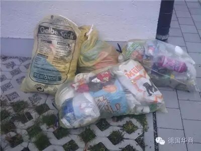 德國人的日常生活中垃圾大致可以分為六類:生物垃圾(Bioabfall oder Biomüller)、廢紙(Altpapier)、包裝袋(Gelber Sack)、有毒廢物(Giftmobil)、廢舊玻璃(Glas)和其他垃圾(Restabfall)。每戶人家至少有黑色垃圾箱(Restabfall雜項垃圾);黃色垃圾箱(Gelbe Sack或者只是黃色塑料袋,可在市鎮(zhèn)指定地點領取:放置塑料瓶、包裝袋、易拉罐、牛奶盒等);棕色垃圾箱(Bioabfall生物垃圾:廚余,包括咖啡濾紙、茶包及花園廢物,樹枝樹葉剪下的野草等);藍色或綠色垃圾箱:廢紙(Altpapier)。有毒廢物(Giftmobil)、廢舊玻璃(Glas)都是在指定場所丟置,玻璃瓶還要根據(jù)白(就是透明的)、綠、咖啡,丟不同顏色的箱子。