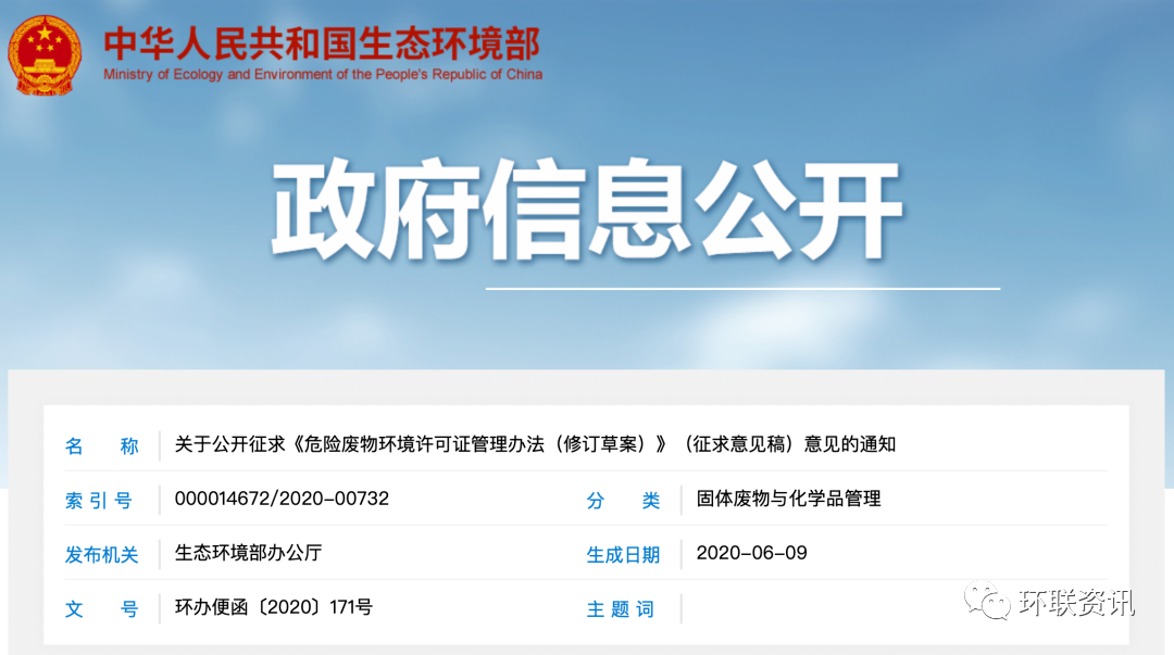 日前,生態(tài)環(huán)境部發(fā)布《危險(xiǎn)廢物環(huán)境許可證管理辦法(修訂草案)(征求意見(jiàn)稿)》。