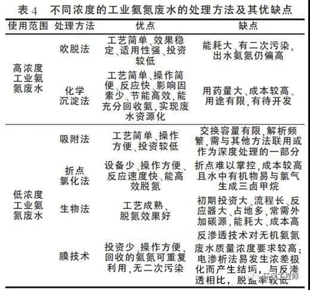 不同氨氮廢水處理方法優(yōu)缺點(diǎn)比較見(jiàn)表4。