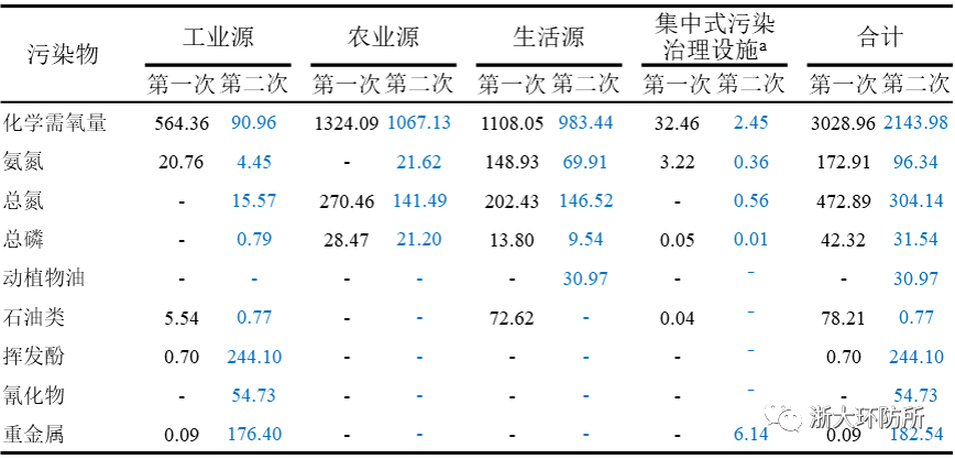 a第一次全國污染源普查中,集中式污染治理設(shè)施指垃圾處理廠(滲濾液)污染物排放量;第二次全國污染源普查中,集中式污染治理設(shè)施指垃圾處理和危險廢物(醫(yī)療廢物)處置廢水(滲濾液)污染物排放量。