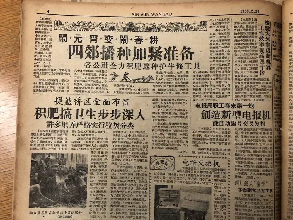 1959年2月20日《新民晚報(bào)》刊載消息“提籃橋區(qū)......許多里弄嚴(yán)格實(shí)行垃圾分類(lèi)”