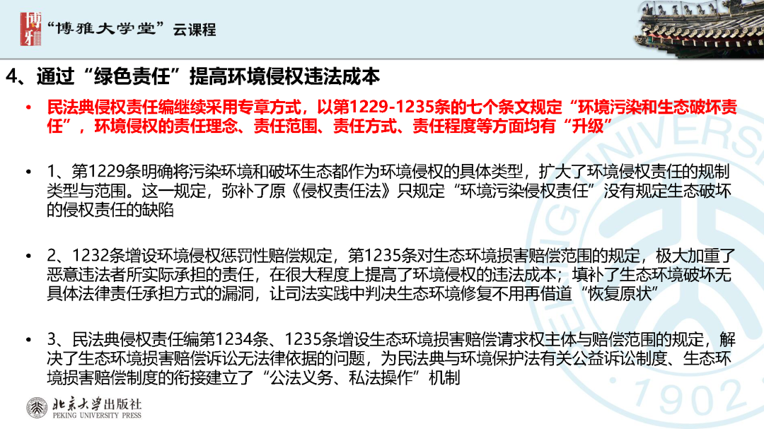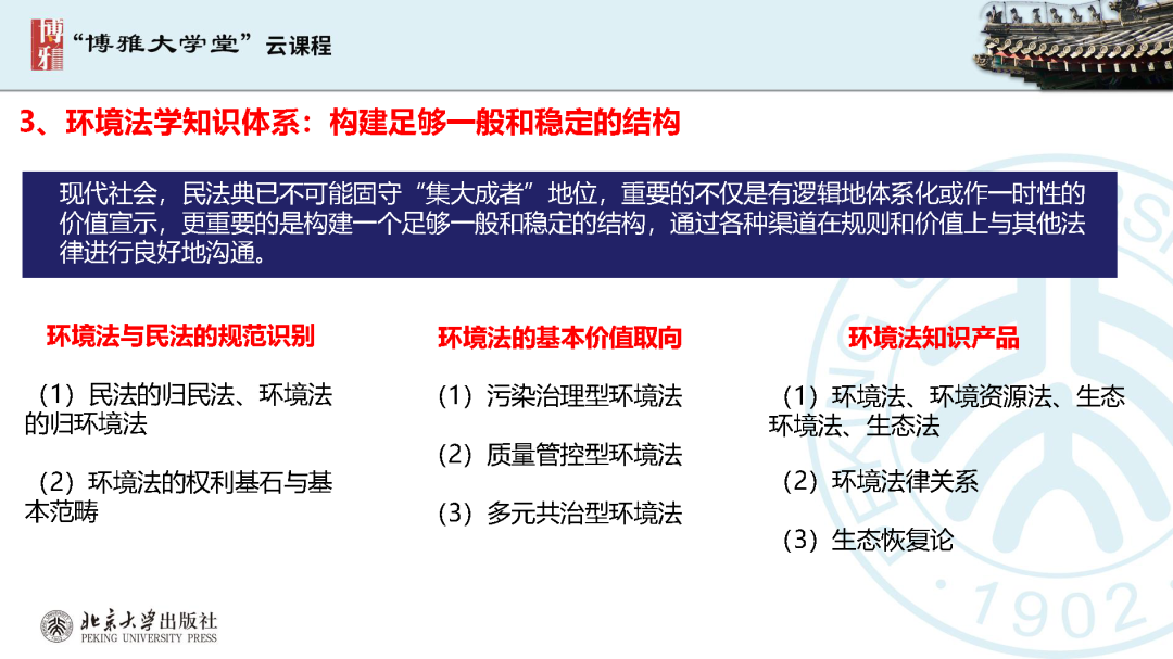 本文為?呂忠梅?老師在博雅大學(xué)堂上的報(bào)告。題目為《綠色民法典實(shí)施:環(huán)境法的機(jī)遇與挑戰(zhàn)》。內(nèi)容主要涉及民法典為什么要綠色化、民法典的綠色規(guī)則體系及綠色民法典給環(huán)境法帶來(lái)的新機(jī)遇和新挑戰(zhàn)。