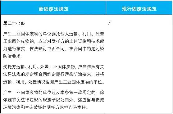 4.新增了委托他人運(yùn)輸、利用、處置工業(yè)固廢的,應(yīng)對受托方進(jìn)行審查,否則承擔(dān)連帶責(zé)任的要求