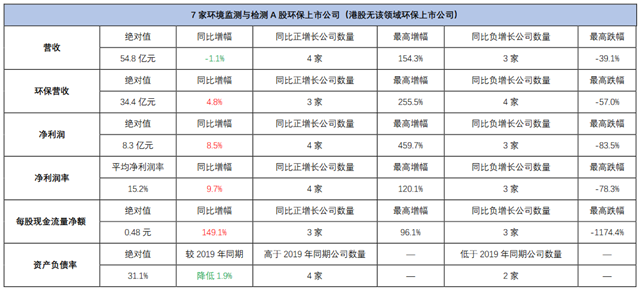 2020年上半年環(huán)境監(jiān)測與檢測環(huán)保上市公司主要業(yè)績指標