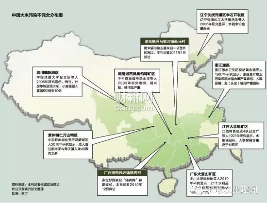 財新網(wǎng)記者根據(jù)實地探訪和公開發(fā)表的論文,整理出了一份《中國大米污染不完全分布圖》。該分布圖顯示,遼寧、湖南、浙江、江西、四川、貴州、廣東、廣西等省份的部分地區(qū),不同程度地存在重金屬污染問題,其中絕大多數(shù)都存在鎘污染,并且以廠礦地區(qū)為主。
