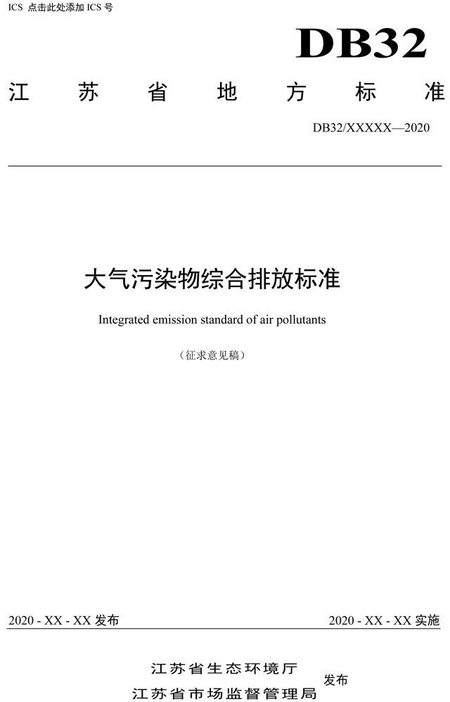 日前,江蘇發(fā)布《江蘇省大氣污染物綜合排放標準(征求意見稿)》。