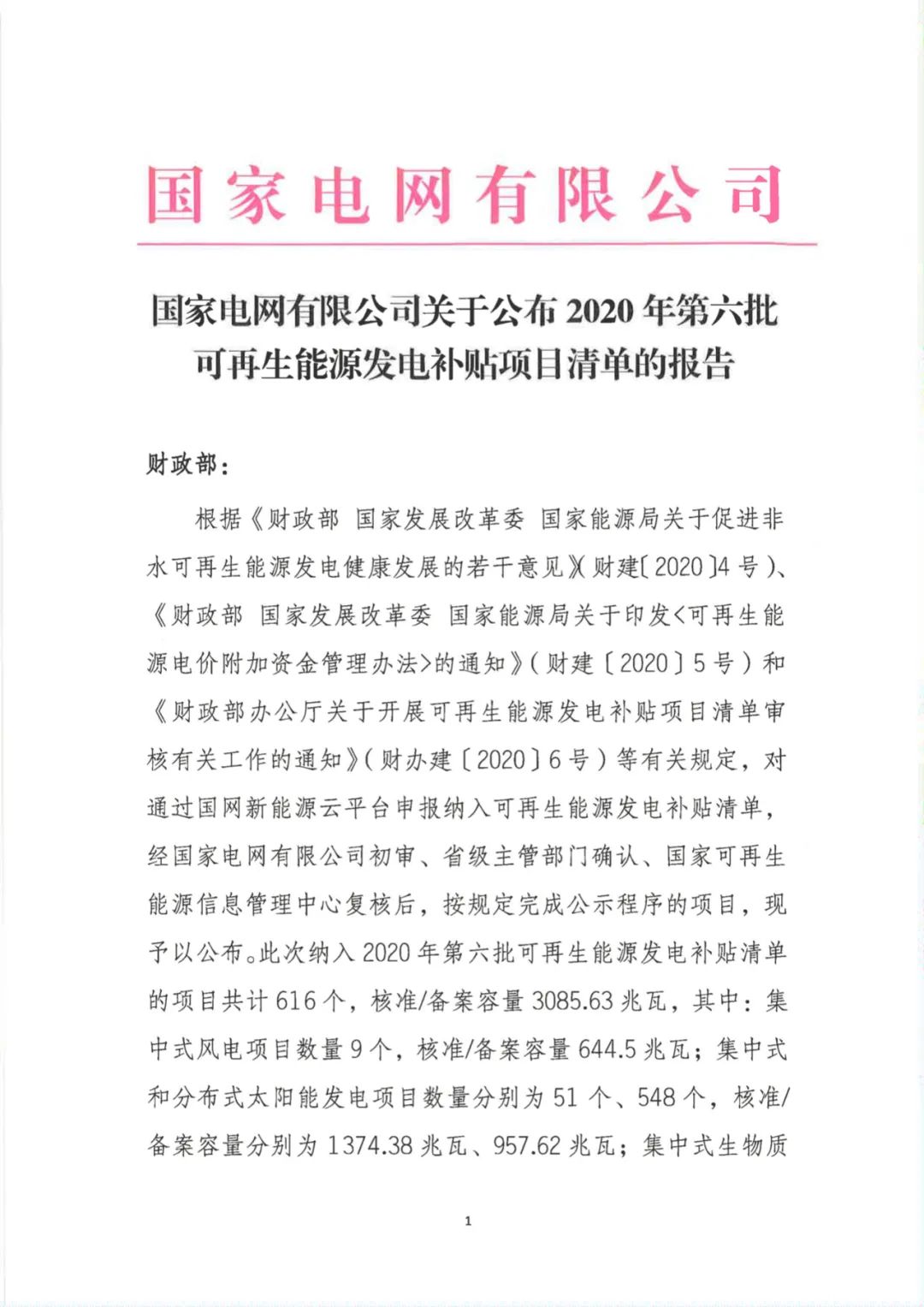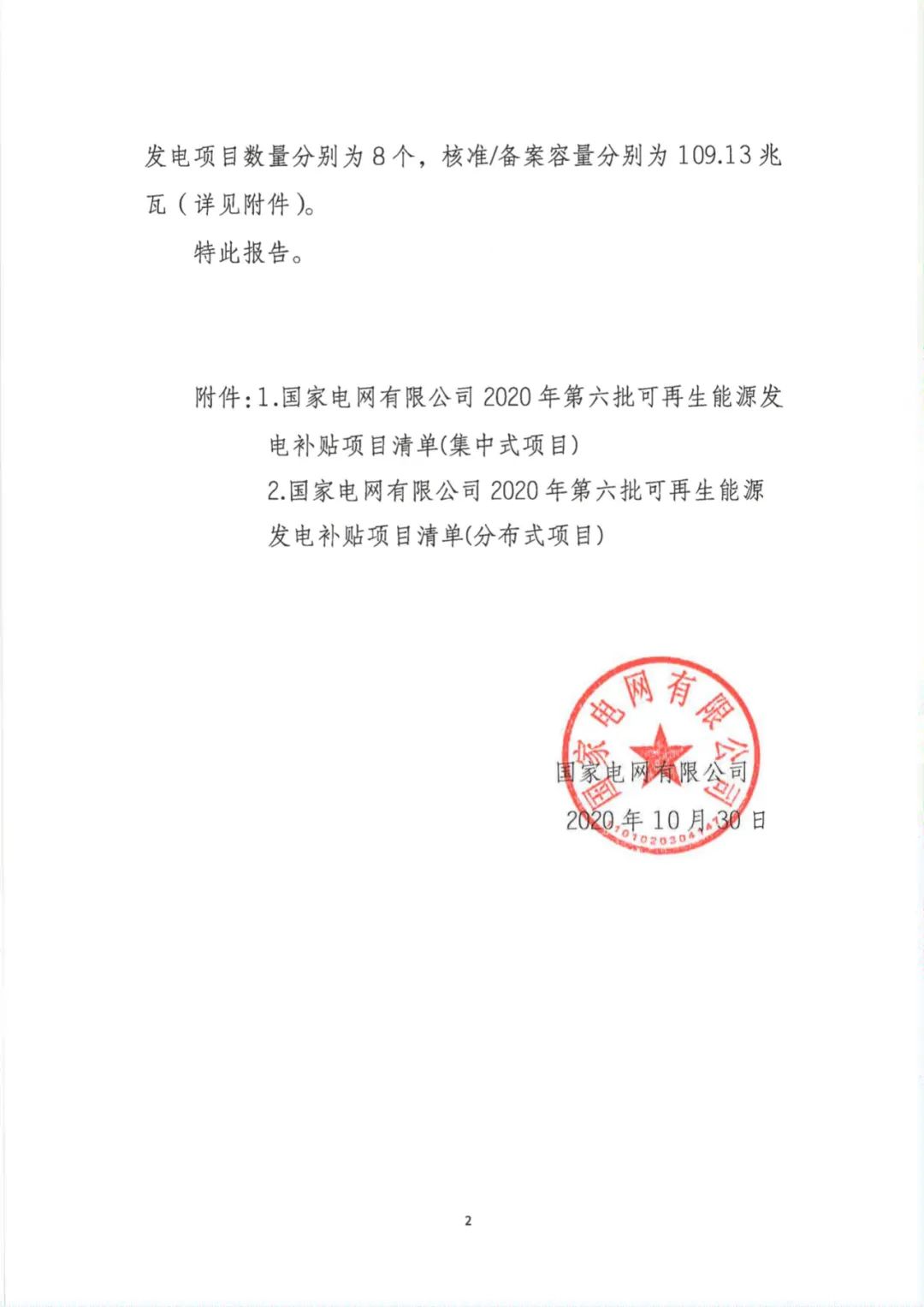 關于公布2020年第六批可再生能源發(fā)電