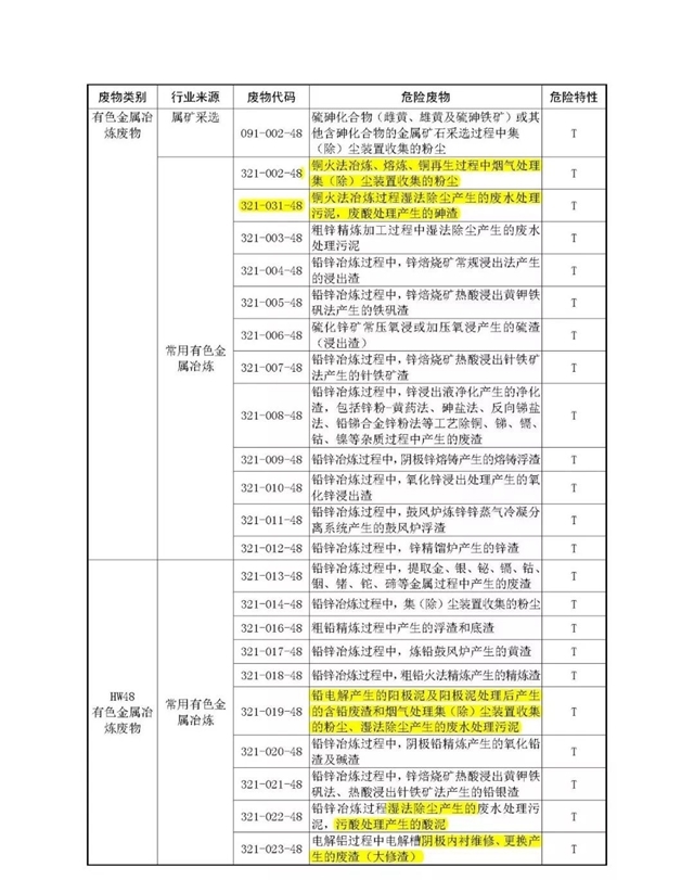 5.修改銅、鉛、鋅冶煉相關(guān)危險(xiǎn)廢物的規(guī)定。2016 年版《名錄》對(duì)銅、鉛、鋅等有色金屬冶煉過(guò)程產(chǎn)生的危險(xiǎn)廢物類型及工藝描述不清,本次修訂過(guò)程中對(duì)該類廢物開展了專項(xiàng)調(diào)查研究,重新梳理并細(xì)化了銅、鉛、鋅冶煉過(guò)程產(chǎn)生的危險(xiǎn)廢物種類及其工藝來(lái)源和危險(xiǎn)特性。