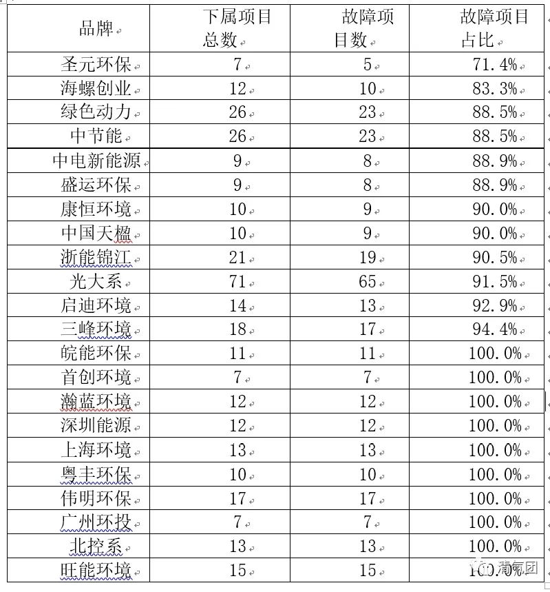 生態(tài)環(huán)境部下轄生活垃圾焚燒發(fā)電廠自動監(jiān)測數(shù)據(jù)公開平臺中,對所有垃圾焚燒廠的每一臺焚燒爐,是否檢修,是否出現(xiàn)重大故障等異常工況,都有了明確的公開要求,如果發(fā)生相關(guān)工況,每個焚燒企業(yè)必須對所轄的每臺爐,每天必須公示一次。減少垃圾焚燒廠的檢修和故障,是每個垃圾焚燒企業(yè)管理者和地方環(huán)衛(wèi)主管單位都極力想實現(xiàn)的主要運營和管理目標(biāo)。對于環(huán)衛(wèi)主管部門來說,檢修多,說明停爐多,這會影響城市生活垃圾的正常處置效率,影響環(huán)境衛(wèi)生工作的正常開展;故障多,有可能造成垃圾焚燒煙氣排放的穩(wěn)定性,煙氣超標(biāo)排放的幾率可能上升。對于垃圾焚燒廠來說,故障檢修多,帶來的企業(yè)運營成本上升,臭氣污染風(fēng)險增大,垃圾處理費收入和發(fā)電收入下降,是很不劃算的事情。所以,相關(guān)情況的公示,也有利于群眾協(xié)助政府,更好的對垃圾焚燒廠進(jìn)行監(jiān)督,也有利于政府部門和相關(guān)綠色金融機(jī)構(gòu),更好的判斷垃圾焚燒企業(yè)的基本運營能力。同時,根據(jù)住建部2010年發(fā)布的《生活垃圾處理技術(shù)指南》要求,一個垃圾焚燒項目企業(yè)的運營能力和運維水平高低,可以用一個基本的指標(biāo)來衡量,就是單臺焚燒爐的年運營小時數(shù),是否能夠達(dá)到八千小時,折合成天數(shù),為333天,這也是住建部相關(guān)技術(shù)指南對垃圾焚燒運維能力的基本要求。以一年365天計算,一臺垃圾焚燒爐年運行期間,有768小時,折合32天,可以處于空白運營期,也是留給垃圾焚燒爐進(jìn)行各種檢修的空檔時間。如果一個垃圾焚燒企業(yè)運營能力強(qiáng),設(shè)備選型合理,運維日常操作規(guī)范和設(shè)備保養(yǎng)到位,就會減少故障發(fā)生幾率,減少檢修所需時間,其單爐運營時間可能超過八千小時。同理,如果運營能力弱,故障幾率高,檢修所需時間就可能大大增加,其單爐運營時間就可能少于八千小時。清氣團(tuán)、上海青悅、蕪湖生態(tài)中心三家組織的垃圾焚燒esg環(huán)境績效平臺研究團(tuán)隊,對生態(tài)環(huán)境部相關(guān)公示信息,進(jìn)行了詳細(xì)收集,截止2020年11月2日,共收錄了六萬兩千余條有效工況信息。囊括了29省,204個城市,480家企業(yè),1093臺垃圾焚燒爐的工況情況。公開平臺中,對企業(yè)工況的公示,進(jìn)行標(biāo)注。前兩大類,是必須停爐或停運的工況,后一類,則是無需停爐停運,可以在運營期間進(jìn)行維修,但會影響爐溫達(dá)標(biāo)的信息。同時,三類信息還必須包括相關(guān)過程信息,如是否停爐,是否啟爐,是否烘爐,是否停運,又或是何種故障導(dǎo)致的檢修。(見圖1)計劃內(nèi)檢修,是企業(yè)根焚燒爐持續(xù)運行狀況,為了解決存在的問題或規(guī)律性的正常維護(hù),而做出的有計劃有目的,對設(shè)備進(jìn)行預(yù)防性修理或徹底檢查的檢修工作,這種檢修研究團(tuán)隊認(rèn)為是負(fù)責(zé)任的運維管理表現(xiàn)。但有一種特殊的計劃內(nèi)檢修,研究團(tuán)隊認(rèn)為值得深入分析。如,由于垃圾焚燒的工藝特殊性,生活垃圾受政策、天氣、經(jīng)濟(jì)等因素影響,導(dǎo)致有些企業(yè)入廠垃圾量不夠,焚燒能力發(fā)生季節(jié)性過剩,所以企業(yè)借計劃內(nèi)檢修之名義,對部分爐子進(jìn)行臨時停爐停運,等入廠垃圾量到達(dá)飽和,再擇機(jī)啟爐。計劃外檢修和故障檢修,則是因為焚燒爐運行過程中,臨時發(fā)生故障,影響整個垃圾焚燒系統(tǒng)的正常運營,視情況決定是否停爐的檢修。平臺數(shù)據(jù)將計劃外檢修和故障,還細(xì)分為13個小類,并要求企業(yè)上報系統(tǒng)時,必須如實選擇。細(xì)分項目如下:3、惡劣天氣(自然災(zāi)害)、政策等外部原因停產(chǎn)4、惡劣天氣(自然災(zāi)害)等外部原因停產(chǎn)計劃外檢修和故障的頻次如果發(fā)生較多、檢修時間較長,說明相關(guān)焚燒爐的運行質(zhì)量,焚燒操作班組的運維能力,已經(jīng)存在較大問題隱患,也是研究團(tuán)隊較為關(guān)注的。生態(tài)環(huán)境部對相關(guān)情況的公示,非常有利于公眾對垃圾焚燒廠運營質(zhì)量進(jìn)行較為清晰的識別和判斷,有助于公眾更便利的監(jiān)督相關(guān)企業(yè),也將減少以往公眾對垃圾焚燒廠信息公開不透徹帶來的不信任和抗拒心理。接下來,研究團(tuán)隊對相關(guān)數(shù)據(jù)進(jìn)行了詳細(xì)統(tǒng)計分析,發(fā)現(xiàn)了許多有意思的信息。第一,今年共有397家垃圾焚燒項目企業(yè),共771臺焚燒爐,出現(xiàn)過一天次以上的計劃外停爐現(xiàn)象。其中,單個企業(yè)計劃外停爐最高天次為301天,為天津某焚燒企業(yè)。單臺爐計劃外停爐最高天次為109天,為河南省某焚燒企業(yè)。第二,今年共有463家企業(yè),共1070臺爐,有過一天次以上的計劃內(nèi)停爐現(xiàn)象。其中,單個企業(yè)計劃內(nèi)最高停爐天次為497天,單臺爐計劃內(nèi)最高停爐天次為249天,以上兩個工況均發(fā)生在浙江省某焚燒企業(yè)。此外,該企業(yè)的相關(guān)焚燒爐,在生態(tài)環(huán)境部的平臺上,已標(biāo)示為從11月2日后處于關(guān)停狀態(tài)。第三,今年共有480家企業(yè),共1093臺爐,出現(xiàn)一次以上的故障和計劃外工況。單個企業(