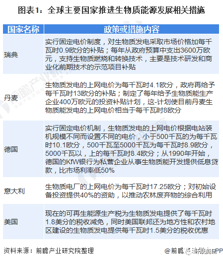 在歐美等發(fā)達國家,生物質發(fā)電技術已經非常成熟,且成為一些國家重要的發(fā)電和供熱方式。目前,歐盟是全球生產和消費生物質燃料最多的國家,美國排第二,這兩大主體引領者全球生物質能源發(fā)展。而從對比各國生物質能源相關政策和法規(guī)發(fā)現(xiàn),上網電價優(yōu)惠、稅費減免和財政補貼是各國最為常用的激勵性政策手段。
