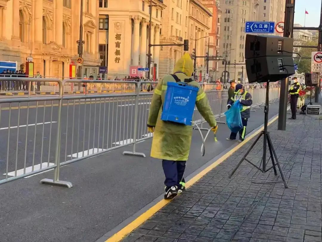 黃浦綠化市容局協(xié)同作業(yè)單位全程服務(wù)保障賽事起點(diǎn)外灘金牛廣場和區(qū)內(nèi)賽道沿線的環(huán)境衛(wèi)生,出動(dòng)保潔人員2860人、清理道路垃圾12噸、保潔上馬賽道31條,出動(dòng)機(jī)掃車輛128車次、沖洗車輛186車次。