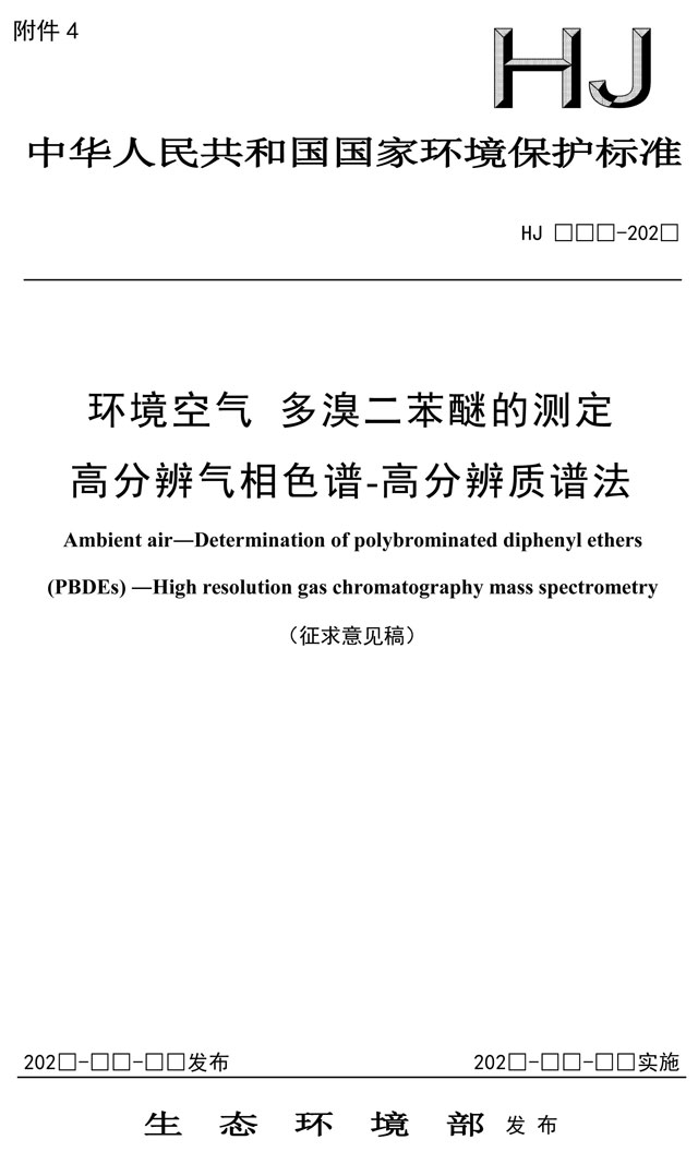 原標(biāo)題:環(huán)境空氣 多溴二苯醚的測定 高分辨氣相色譜-高分辨質(zhì)譜法(征求意見稿)