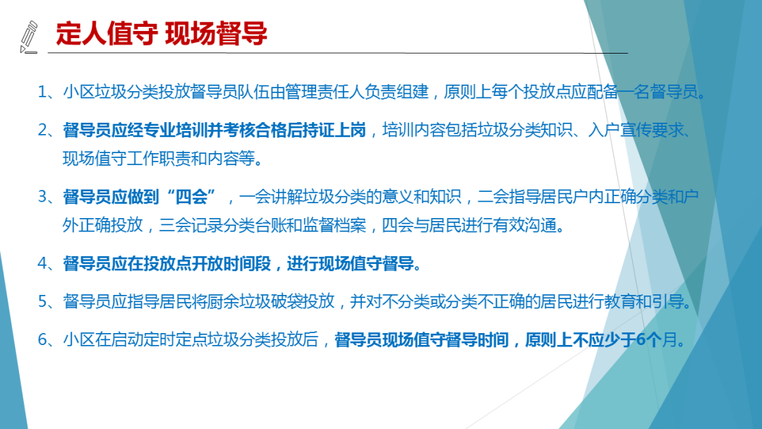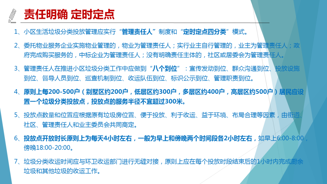 自習(xí)近平總書記2016年11月21日提出要建立生活垃圾分類制度以來,46個(gè)重點(diǎn)城市的垃圾分類工作取得了初步成效,其他城市的垃圾分類工作也在逐步推進(jìn),但由于受新冠疫情等影響,總體進(jìn)展情況低于預(yù)期。垃圾分類是一項(xiàng)涉及面很廣的系統(tǒng)工程,其中小區(qū)投放環(huán)節(jié)是決定成敗的核心環(huán)節(jié),而“簡便易行、合理布局”是投放設(shè)施設(shè)置的基本準(zhǔn)則。如何按照這個(gè)準(zhǔn)則來規(guī)范管理人職責(zé)和行為、優(yōu)化投放點(diǎn)設(shè)置和形式、實(shí)施居民區(qū)宣傳和督導(dǎo)?本期固廢觀察將與你一一分享。