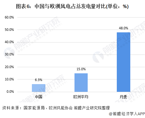 雖然已經(jīng)提前達到了國家能源局發(fā)布的《風(fēng)電發(fā)展“十三五”規(guī)劃》提出的到2020年底我國風(fēng)電占比要達到6%的發(fā)展目標(biāo),但與歐洲相比仍然具有較大的差距,我國風(fēng)電開發(fā)程度仍有較大的提升空間。