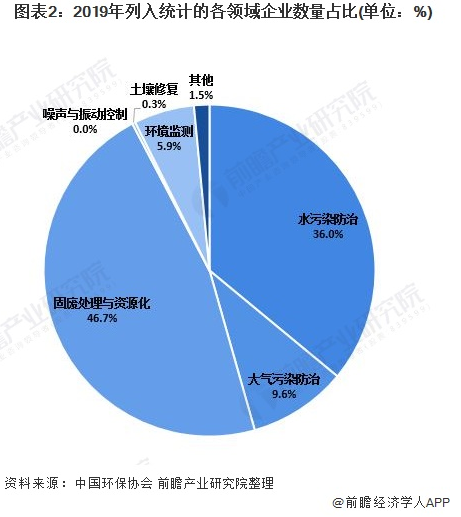 在我國(guó)環(huán)保產(chǎn)業(yè)企業(yè)中,水污染防治、環(huán)境監(jiān)測(cè)領(lǐng)域企業(yè)數(shù)量占比較高;水污染防治、固廢處置與資源化、大氣污染防治3個(gè)領(lǐng)域企業(yè)的營(yíng)業(yè)收入占比居前列,3個(gè)領(lǐng)域企業(yè)營(yíng)業(yè)收入之和占比高達(dá)88.4%。