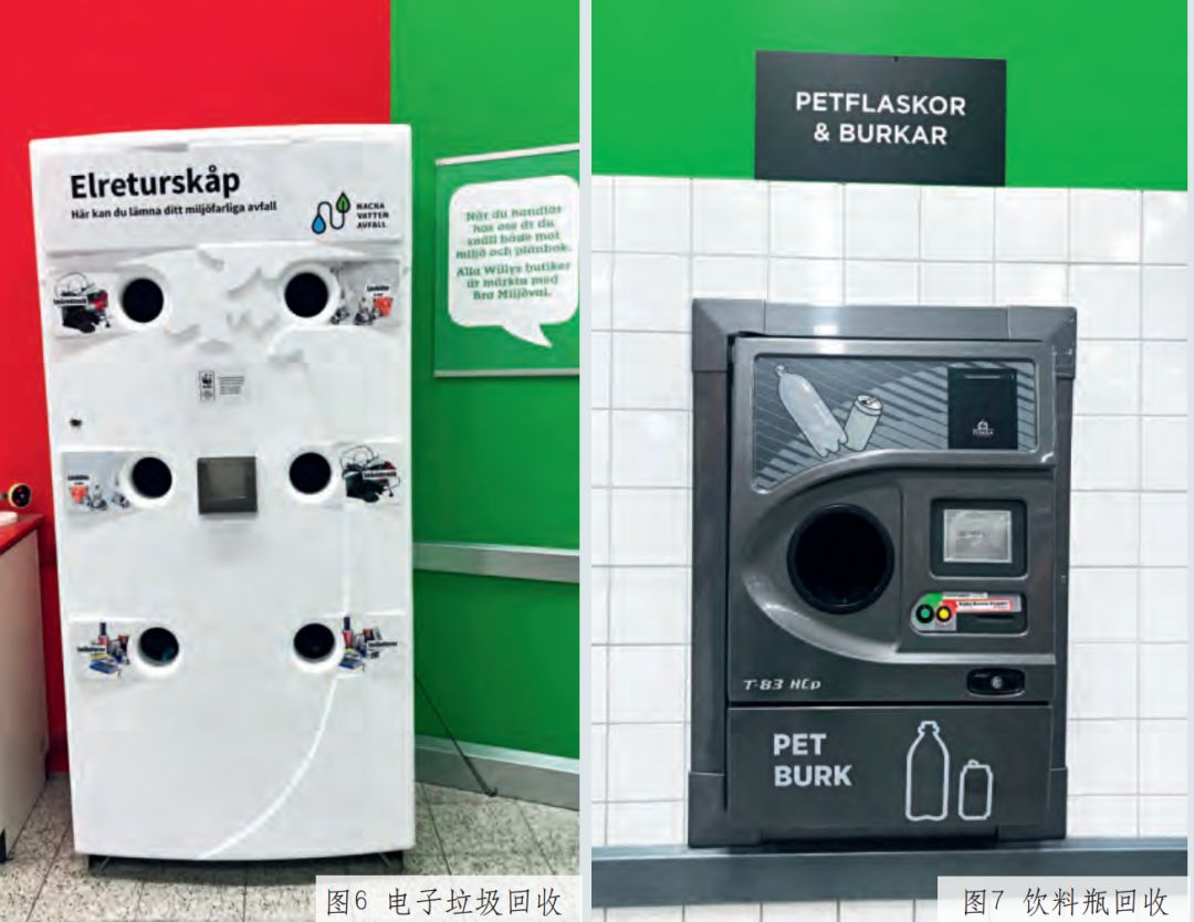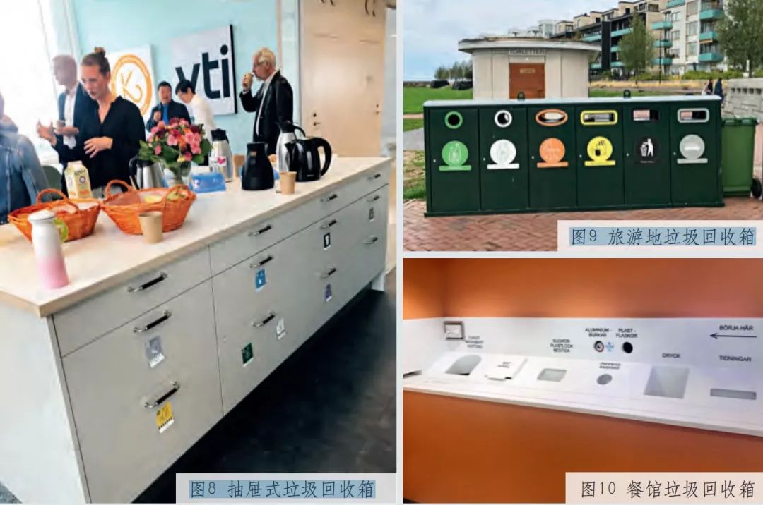 除了分類垃圾箱外,瑞典街道上還設(shè)置了具有壓縮功能的垃圾箱,并在小區(qū)通過(guò)以上展示的部分垃圾分類設(shè)施,反映出瑞典人對(duì)垃圾分類嚴(yán)謹(jǐn)認(rèn)真的精神、以人為本的理念、簡(jiǎn)潔適用的設(shè)計(jì)原則。瑞典的垃圾分類設(shè)施不完全由政府配備,單位和機(jī)構(gòu)也可自行設(shè)置,且各具特點(diǎn),已成為城市一景。