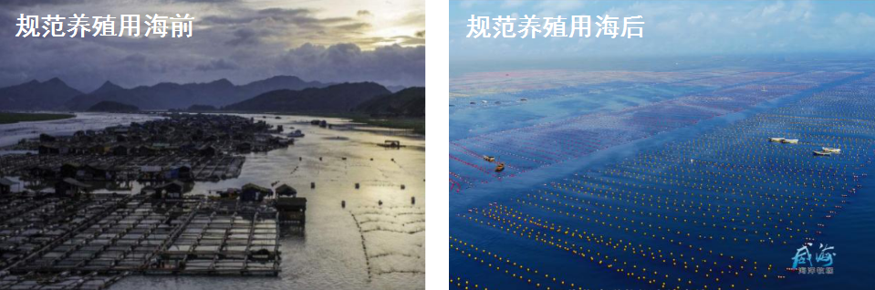 經(jīng)過長期探索,威海市逐步形成了以《海岸帶保護條例》為保障,以《養(yǎng)殖水域灘涂規(guī)劃》和《海岸帶保護規(guī)劃》為引領(lǐng),以“灣長制”、信用分級分類管理、船舶污染物轉(zhuǎn)運聯(lián)單等制度為抓手的“海洋廢棄物”管控制度體系,為推進海洋綠色發(fā)展奠定了堅實制度基礎(chǔ)。圖 5 威海市規(guī)范養(yǎng)殖用海前后對比圖