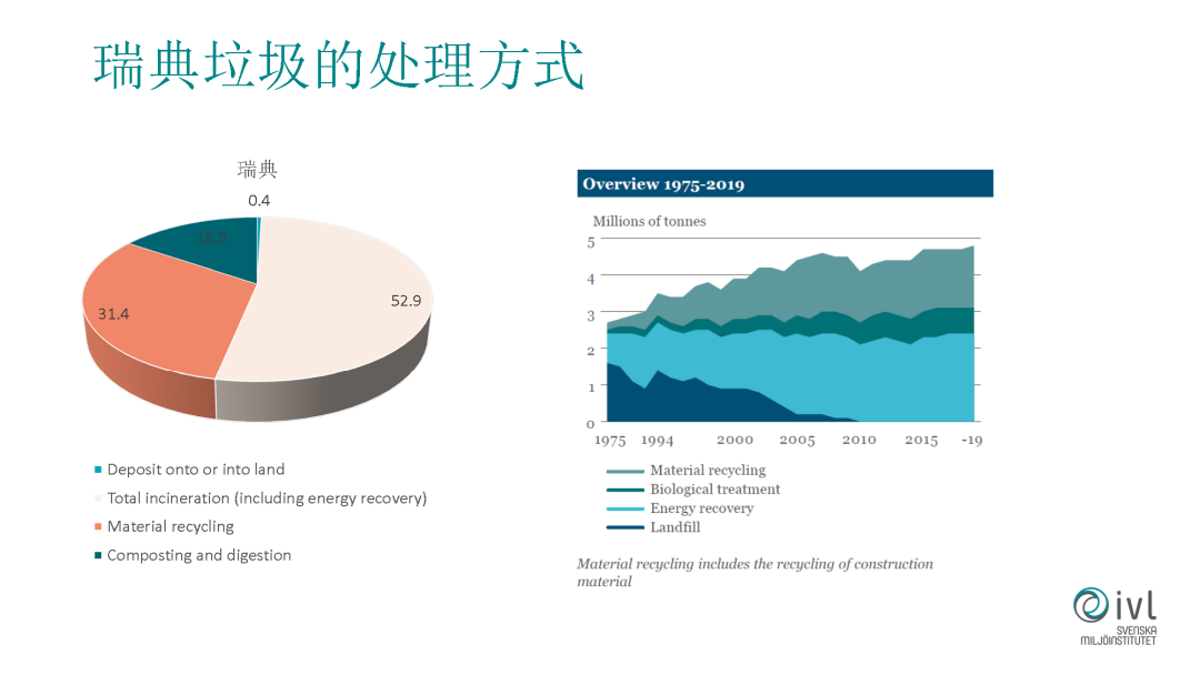 其他的垃圾處理的手段,比如做垃圾電能源,我們所說(shuō)的垃圾焚燒,我們國(guó)內(nèi)現(xiàn)在做的也非常好了。有一點(diǎn)不太一樣,在瑞典它的垃圾焚燒不只是發(fā)電,更多的是去供熱。瑞典的垃圾焚燒廠很多建在市中心,逛完街可能對(duì)面就是垃圾焚燒廠。為什么能建的這么近?一個(gè)是考慮它供熱比較方便,不用長(zhǎng)距離輸送熱量。另外垃圾焚燒的排放做到了非常讓民眾幸福的水平,在過(guò)去也有大家不喜歡垃圾焚燒廠在自己家附近,現(xiàn)在所有的居民完全接受這個(gè)實(shí)施了。