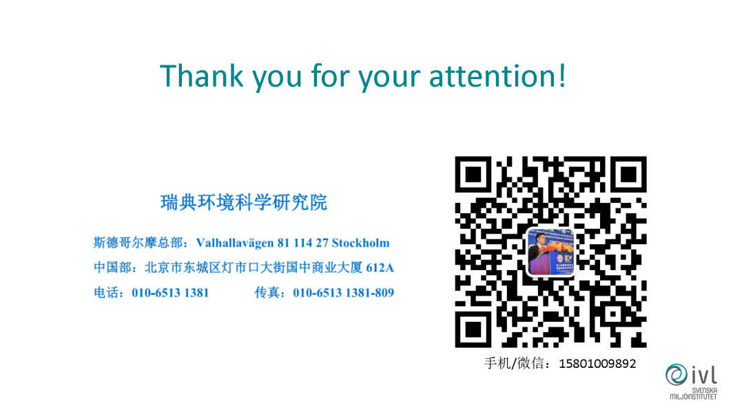 最后跟大家分享一個(gè)平臺(tái),瑞典政府現(xiàn)在打造的一個(gè)叫智慧城市瑞典的技術(shù)出口和投資平臺(tái)。瑞典環(huán)科院有一半是瑞典政府的股份,所以我們?cè)谧鲎约旱难芯靠蒲幸酝?,我們也幫瑞典的政府做很多服?wù)。這是瑞典政府投資的一個(gè)平臺(tái),他的目的是把瑞典更多的技術(shù)方案、技術(shù)公司向全球推廣。我們?cè)谥袊?guó)的辦公室除了做研究和咨詢以外,也提供這方面的職能。目前這個(gè)平臺(tái)有一千多家的清潔環(huán)保公司,如果我們存在哪些環(huán)境問(wèn)題,或者對(duì)哪些技術(shù)有需求,可以跟我們?nèi)〉靡恍┞?lián)系。我們可以協(xié)調(diào)組織一些線上的或者線下的交流會(huì),和瑞典那邊做一些互動(dòng),促進(jìn)中國(guó)和瑞典在節(jié)能環(huán)保領(lǐng)域的合作。