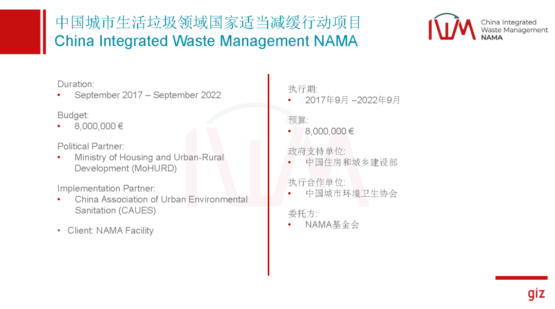 我們其實(shí)相對來說比較早,在2017年的時候,這個概念是在15年就提出來了,在2017年的時候拿到了那馬基金會的支持,基金會也是由德國、丹麥、歐盟以及英國四個國家共同成立的一個基金會,主要就是支持我們發(fā)展中國家在不同的領(lǐng)域探索我們是不是能夠更減排。我們這個項目中方的政府支持單位是住建部,很榮幸能夠得到部里的支持,中國的執(zhí)行合作伙伴是中環(huán)協(xié),項目執(zhí)行期是五年,今年是第四年,預(yù)計明年九月正式結(jié)束。我們現(xiàn)在有四年多的數(shù)據(jù)能跟大家分享一下,看看我們干了什么。