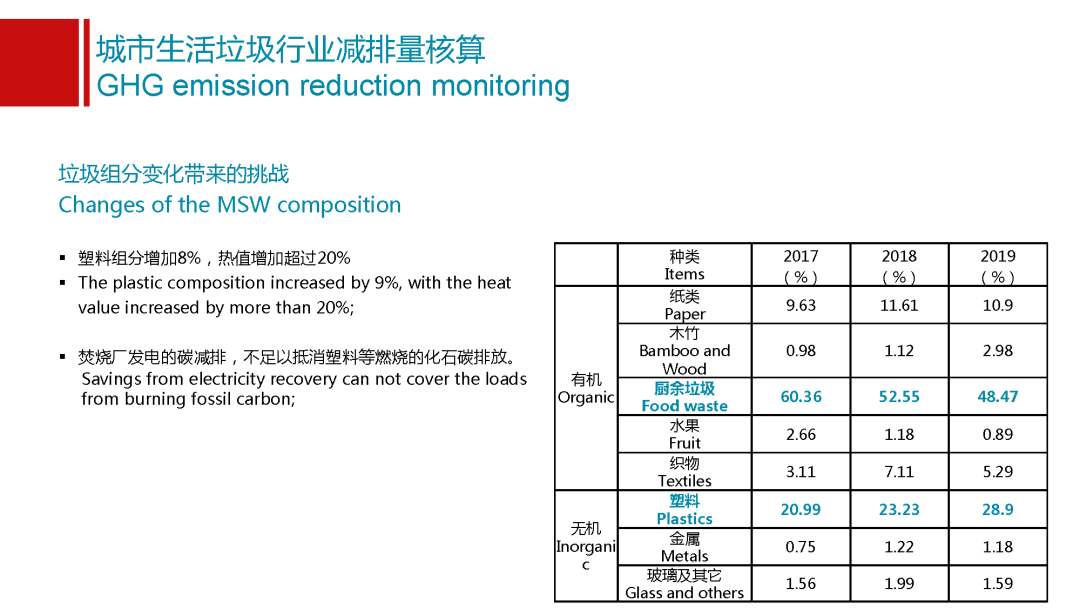 另外一點(diǎn),我還想分享的是垃圾組分給我們整個垃圾行業(yè)帶來的挑戰(zhàn),很多時候會說整個事情的發(fā)展都是日新月異的,我們能夠看到我們垃圾的成分也有非常明顯的變化。