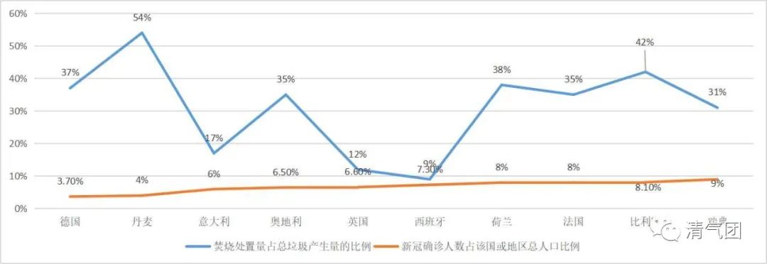 此外,從整個(gè)西歐的數(shù)據(jù)看來,也呈現(xiàn)垃圾焚燒比例高的國家,新冠疫情人口發(fā)病率相對(duì)較低的狀況。