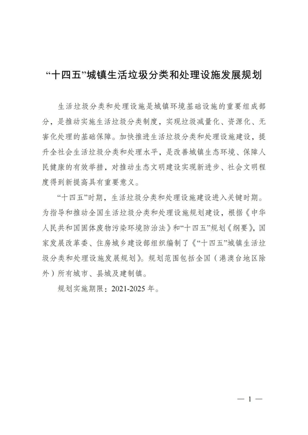 為深入貫徹習近平總書記關(guān)于生活垃圾分類的重要批示指示精神,落實黨中央、國務院決策部署要求,統(tǒng)籌推進“十四五”城鎮(zhèn)生活垃圾分類和處理設(shè)施建設(shè)工作,加快建立分類投放、分類收集、分類運輸、分類處理的生活垃圾處理系統(tǒng),國家發(fā)展改革委、住房城鄉(xiāng)建設(shè)部組織編制了《“十四五”城鎮(zhèn)生活垃圾分類和處理設(shè)施發(fā)展規(guī)劃》?,F(xiàn)印發(fā)你們,請遵照執(zhí)行。