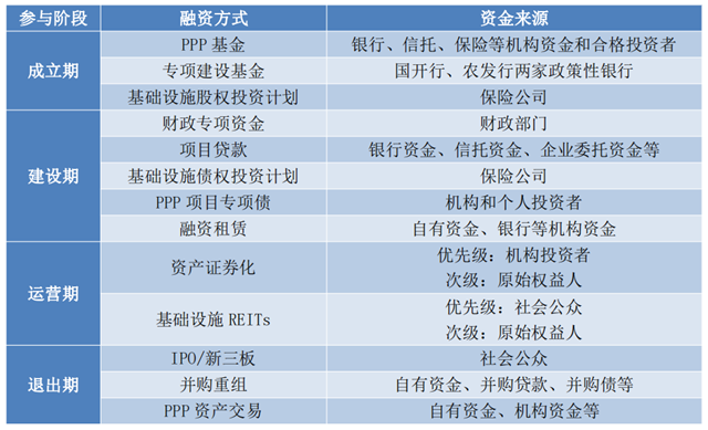 表1 PPP項目全生命周期融資方式