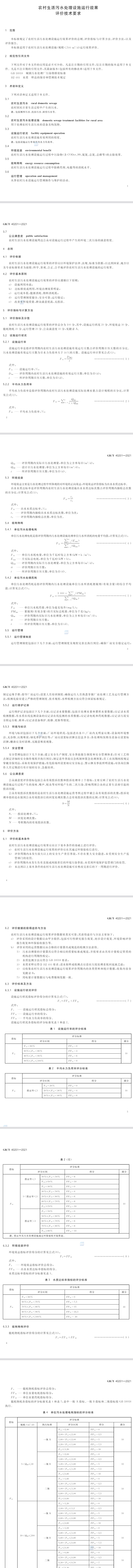 1、范圍本標(biāo)準(zhǔn)規(guī)定了農(nóng)村生活污水處理設(shè)施運(yùn)行效果評(píng)價(jià)的總則、評(píng)價(jià)指標(biāo)與計(jì)算方法、評(píng)價(jià)方法,以及評(píng)價(jià)報(bào)告。本標(biāo)準(zhǔn)適用于農(nóng)村生活污水處理設(shè)施(規(guī)模≤500m3/d)運(yùn)行效果評(píng)價(jià)。