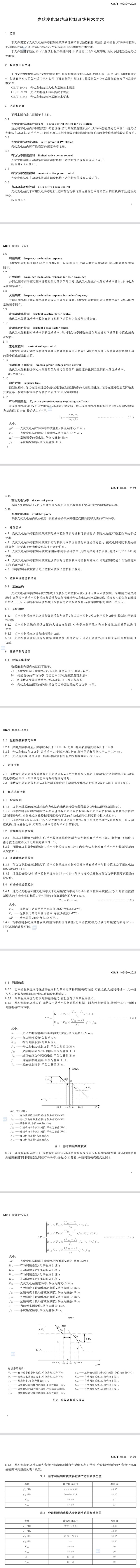 本文件規(guī)定了光伏發(fā)電站功率控制系統(tǒng)的功能和結(jié)構(gòu)、數(shù)據(jù)采集與通信、啟??刂?、有功功率控制、無功電壓控制、閉鎖、控制過程記錄、性能指標(biāo)和系統(tǒng)檢測(cè)等技術(shù)要求。